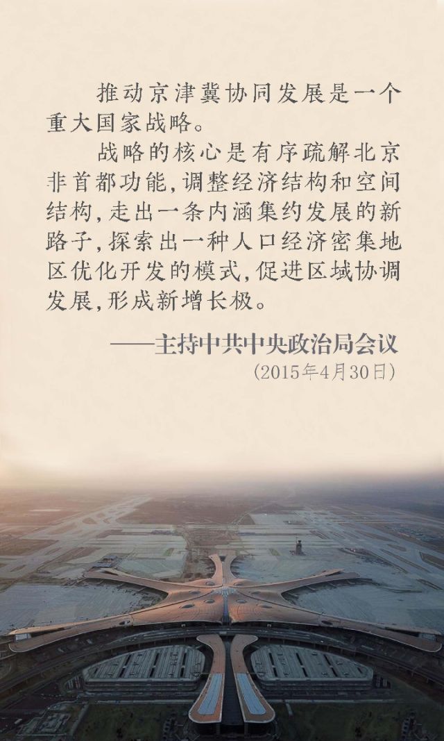 2013年5月,習(xí)近平總書(shū)記在天津調(diào)研時(shí)提出,要譜寫新時(shí)期社會(huì)主義現(xiàn)代化的京津“雙城記”。2013年8月,習(xí)近平總書(shū)記在北戴河主持研究河北發(fā)展問(wèn)題時(shí),又提出要推動(dòng)京津冀協(xié)同發(fā)展??倳?shū)記多次強(qiáng)調(diào),解決好北京發(fā)展問(wèn)題,必須納入京津冀和環(huán)渤海經(jīng)濟(jì)區(qū)的戰(zhàn)略空間加以考量,以打通發(fā)展的大動(dòng)脈,更有力地彰顯北京優(yōu)勢(shì),更廣泛地激活北京要素資源,同時(shí)天津、河北要實(shí)現(xiàn)更好發(fā)展也需要連同北京發(fā)展一起來(lái)考慮。