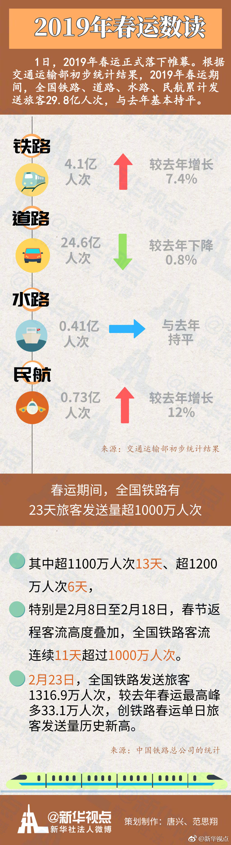1日,2019年春運(yùn)正式落下帷幕。40天的“春運(yùn)時(shí)間”里,公路、鐵路、民航共同發(fā)力,完成了人類歷史上規(guī)模最大的周期性“大遷徙”,運(yùn)輸安全平穩(wěn)有序。