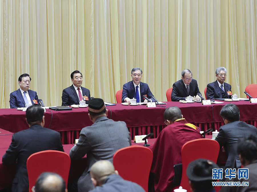 3月4日,中共中央政治局常委、全國(guó)政協(xié)主席汪洋看望出席全國(guó)政協(xié)十三屆二次會(huì)議的宗教界委員并參加討論。 新華社記者 姚大偉 攝