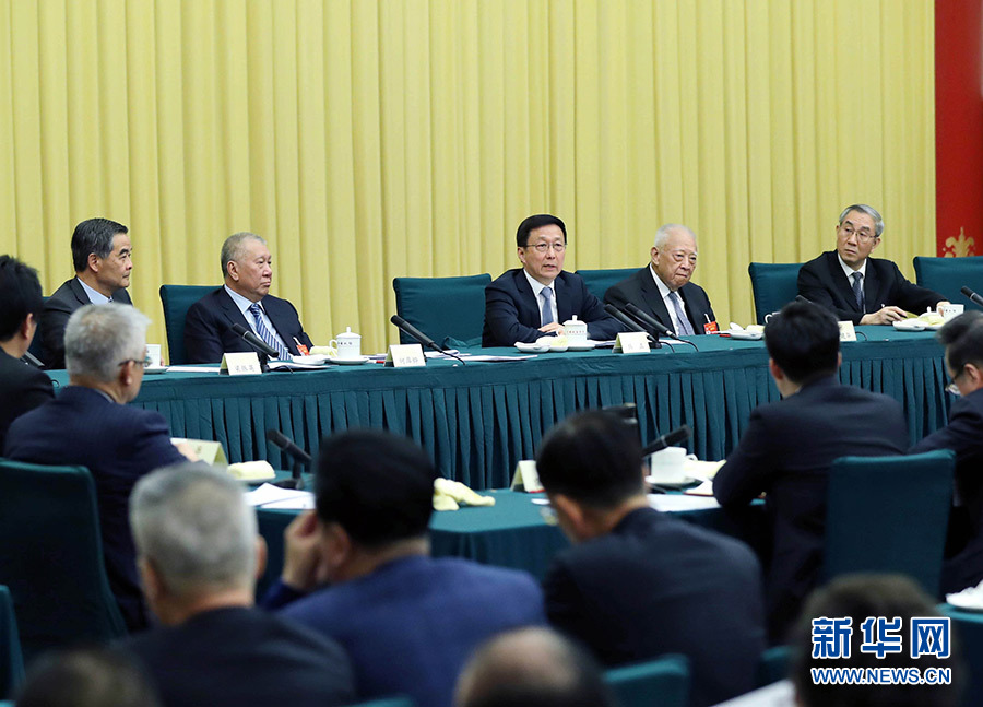 3月4日,中共中央政治局常委、國(guó)務(wù)院副總理韓正看望出席全國(guó)政協(xié)十三屆二次會(huì)議的港澳地區(qū)全國(guó)政協(xié)委員并參加討論。 新華社記者 劉衛(wèi)兵 攝