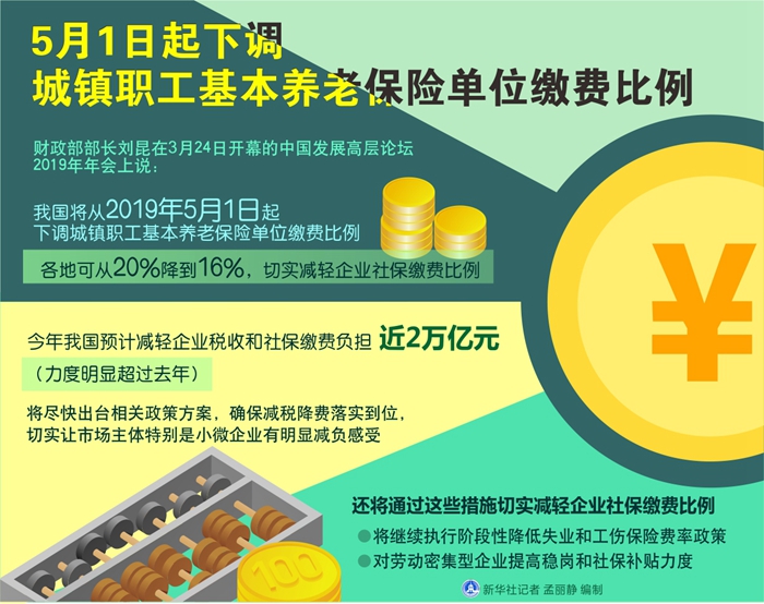 新華社北京3月24日電(記者韓潔、馬卓言)財政部部長劉昆在24日開幕的中國發(fā)展高層論壇2019年年會上說,我國將從2019年5月1日起下調(diào)城鎮(zhèn)職工基本養(yǎng)老保險單位繳費比例,各地可從20%降到16%,切實減輕企業(yè)社保繳費比例。