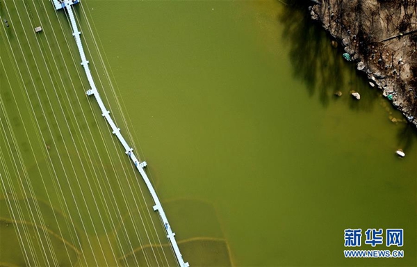 3月26日無人機(jī)拍攝的北京世園會園區(qū)里的一座棧橋。 新華社記者 金良快 攝