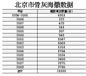 北青報記者了解到,從2014年至2016年,本市骨灰海葬量每年以20%左右的幅度增長。2018年,骨灰海葬占總安葬量比例達到3%。八寶山禮儀公司副總經理王德東表示,去年本市撒海的骨灰有2700多份,計劃今年實現3000份。
