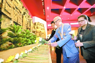 昨天,在中國人民抗日戰(zhàn)爭紀念館,老戰(zhàn)士代表、首都大中小學學生、部隊官兵等向革命先驅獻花。本報記者 饒強攝