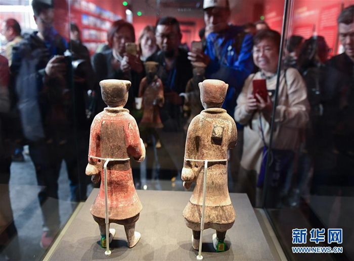 4月24日,觀眾在展柜前欣賞展出的文物。新華社記者 李賀 攝