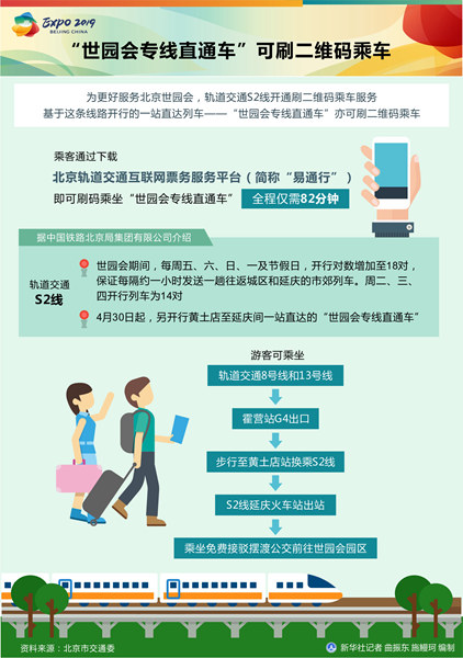 圖表:“世園會(huì)專線直通車”可刷二維碼乘車 新華社記者 曲振東 施鰻珂 編制