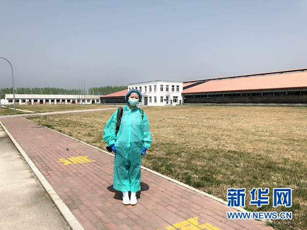 圖為記者穿戴消毒衛(wèi)生裝備進(jìn)入良種場采訪。 新華網(wǎng)馮文雅/攝