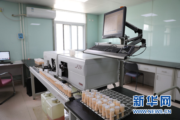在辦公室簡單的交談后,叢慧敏帶記者來到旁邊的一棟辦公樓,門口的工作人員正在從手推車上卸下裝滿了橙色乳狀液體的試管,這也就是叢慧敏的另一項工作——對奶牛產(chǎn)下的牛奶進(jìn)行化驗分析。除了找到好牛,還得讓牛吃上好料,“跟人一樣,我們也會根據(jù)牛的身體狀況合理搭配飲食,目標(biāo)就是保證奶質(zhì)好?!泵總€月首農(nóng)北京奶牛中心都要檢測約8萬份奶樣,對這些來自全國各地的奶質(zhì)進(jìn)行分析,通過數(shù)據(jù)對比得出結(jié)果,再將結(jié)果反饋給牧場,指導(dǎo)牧場飼養(yǎng)過程中需要改進(jìn)的問題?!芭e個例子,某牧場樣本中,我們檢測發(fā)現(xiàn)乳脂低了,那么牛的食物里可能是吃的草少了,就需要我們減少某類飼料的分量,增加草的比重?!?/p>