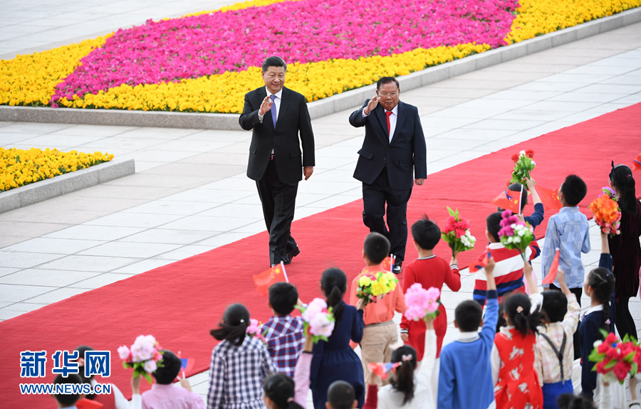 4月30日,中共中央總書記、國(guó)家主席習(xí)近平在北京同老撾人民革命黨中央總書記、國(guó)家主席本揚(yáng)舉行會(huì)談。這是會(huì)談前,習(xí)近平在人民大會(huì)堂東門外廣場(chǎng)為本揚(yáng)舉行歡迎儀式。 新華社記者 饒愛民 攝