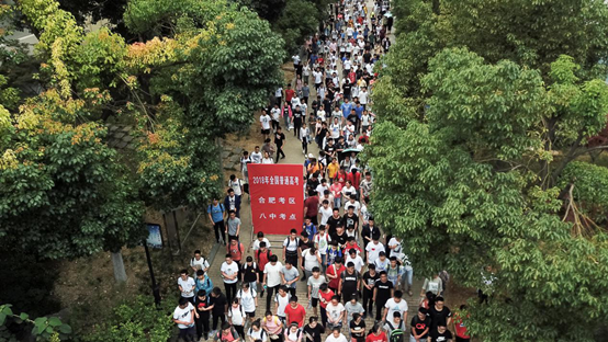 2018年6月7日,高考首場(chǎng)科目考試結(jié)束。在安徽省合肥市第八中學(xué)考點(diǎn),完成第一門考試的考生走出考場(chǎng)(無人機(jī)拍攝)。 新華社記者張端攝