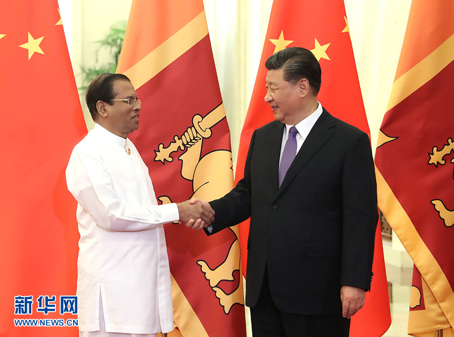 5月14日,國家主席習(xí)近平在北京人民大會(huì)堂會(huì)見來華出席亞洲文明對(duì)話大會(huì)的斯里蘭卡總統(tǒng)西里塞納。 新華社記者 姚大偉 攝