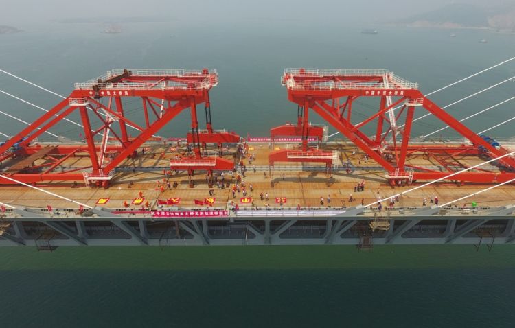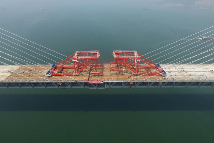 6月5日,福平鐵路平潭海峽公鐵兩用大橋元洪航道橋主橋成功合龍。(新華社記者林善傳 攝)