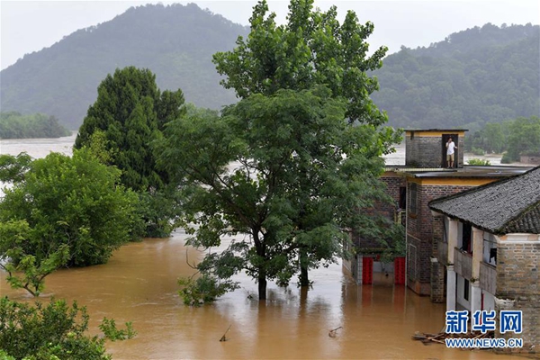遭洪水包圍的江西省吉安市永新縣在中鄉(xiāng)排形村一角(6月9日攝)。新華社記者 彭昭之 攝