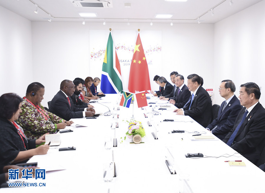 6月28日,國家主席習(xí)近平在大阪會見南非總統(tǒng)拉馬福薩。 新華社記者 龐興雷 攝