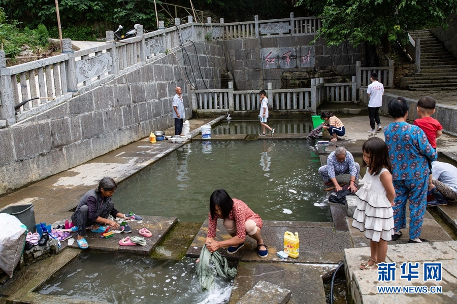 在紅軍井洗衣的當(dāng)?shù)匕傩?。新華社記者 吳壯 攝
