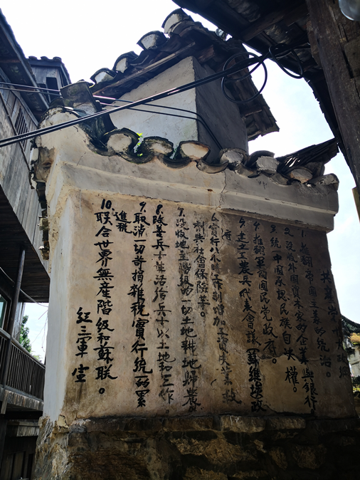 查閱近年來關(guān)于紅軍的報道,我發(fā)現(xiàn)在湖北、陜西等地,都有紅軍留下的《十大政綱》遺跡,有用毛筆寫的,也有用刀工刻在石板上的。在白色恐怖的日子里,各地群眾冒著生命危險,用各種方式保護(hù)《十大政綱》留存下來,憑的是對紅軍的感情和對未來美好社會的信念。