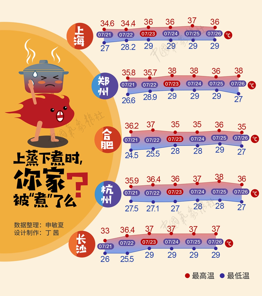 7月23日全國最高氣溫,“蒸煮”火力十足。
