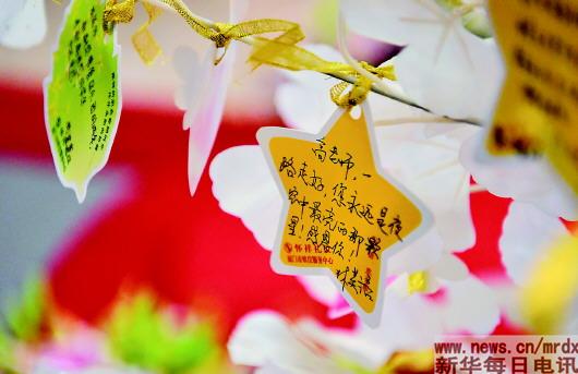 7月21日,廈門六中音樂老師高至凡曾教過的廈門六中合唱團學生追念老師的留言。新華社記者魏培全攝