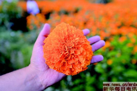 萬壽菊花單體重可達95克,直徑10厘米左右。