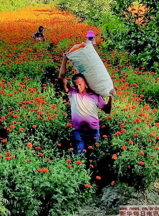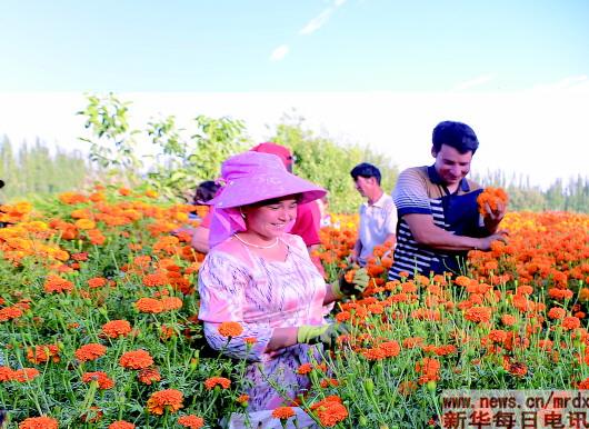 “種萬壽菊增收快,訂單農(nóng)業(yè)很不錯?!卑透癜⑼咛徉l(xiāng)巴格吉格代村貧困戶阿布力米提·賽麥提說,去年他只種了2.5畝萬壽菊就掙了5000元。
