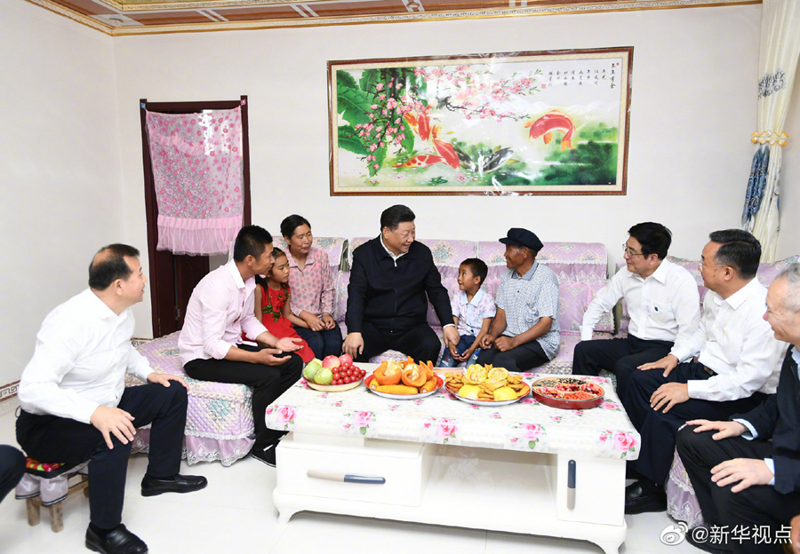 富民新村地處甘肅省古浪縣黃花灘生態(tài)移民區(qū),習近平總書記21日上午來到這里,看望從山區(qū)生態(tài)移民易地扶貧搬遷的鄉(xiāng)親們。他走進村民李應川家,小院潔凈、住房敞亮、廚衛(wèi)設(shè)施齊全。在客廳坐下來,李老漢拿出一張搬遷前的老照片給總書記看,曾經(jīng)居住的土坯房同窗明幾凈的新居有天壤之別。習近平對這里群眾生產(chǎn)生活條件發(fā)生的巨大變化感到十分欣慰,李老漢連連感嘆現(xiàn)在日子太幸福了。習近平強調(diào),你們高興我們也高興,共產(chǎn)黨就是為人民服務的,就是為老百姓辦事的,讓老百姓生活更幸福就是共產(chǎn)黨的事業(yè)。(文字記者:張曉松、朱基釵 攝影記者:鞠鵬、謝環(huán)馳)