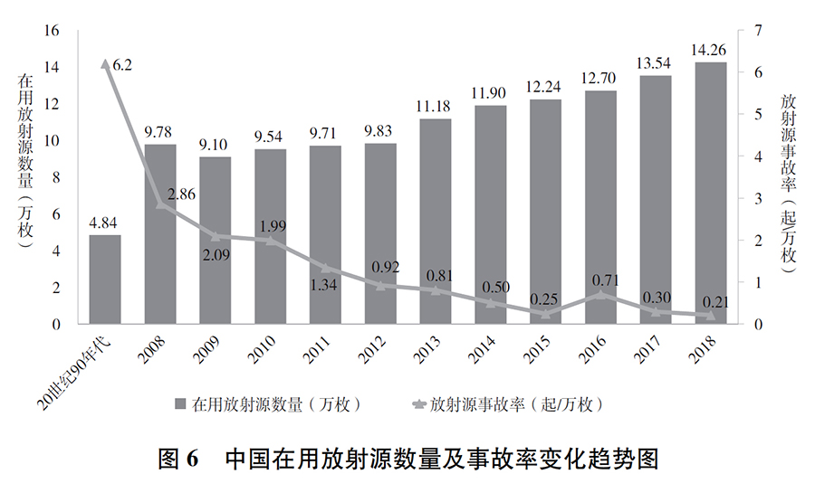 核技術(shù)利用安全水平大幅提升。對(duì)放射源實(shí)行從“搖籃”到“墳?zāi)埂钡娜^(guò)程動(dòng)態(tài)管理,將所有涉源單位納入政府監(jiān)管范圍,建立國(guó)家核技術(shù)利用管理數(shù)據(jù)庫(kù),實(shí)施放射源安全提升行動(dòng),實(shí)現(xiàn)高風(fēng)險(xiǎn)移動(dòng)源在線實(shí)時(shí)監(jiān)控,提高核技術(shù)利用安全水平。截至2019年6月,中國(guó)在用放射源142607枚,各類射線裝置181293臺(tái)(套),從事生產(chǎn)、銷售、使用放射性同位素和射線裝置的單位共73070家,放射源和射線裝置100%納入許可管理,廢舊放射源100%安全收貯。放射源輻射事故年發(fā)生率持續(xù)降低,由20世紀(jì)90年代的每萬(wàn)枚6.2起降至目前的每萬(wàn)枚1.0起以下,達(dá)到歷史最低水平。