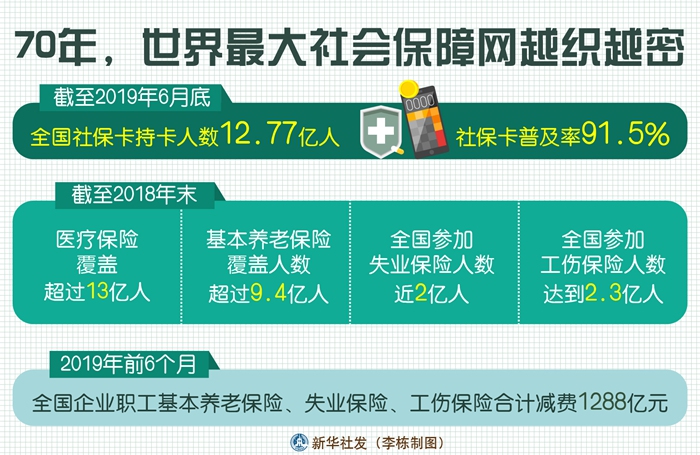 1951年2月26日,新中國成立后第一個(gè)社會(huì)保險(xiǎn)法規(guī)《中華人民共和國勞動(dòng)保險(xiǎn)條例》頒布。70年來,一系列政策措施頒布實(shí)施,給老百姓帶來實(shí)實(shí)在在、看得見摸得著的好處。社會(huì)保障不斷加強(qiáng),織就世界最大的社會(huì)保障網(wǎng)。