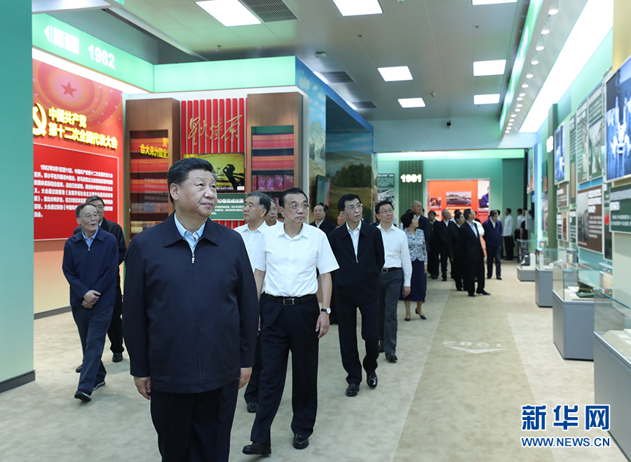 李克強(qiáng)、汪洋、王滬寧、趙樂(lè)際、韓正、王岐山參觀(guān)展覽。