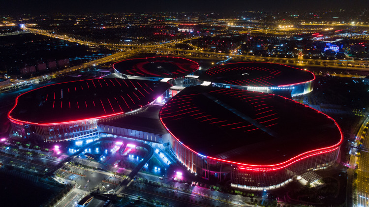 2018年10月,上海。無人機拍攝的國家會展中心。(新華社記者丁汀攝)