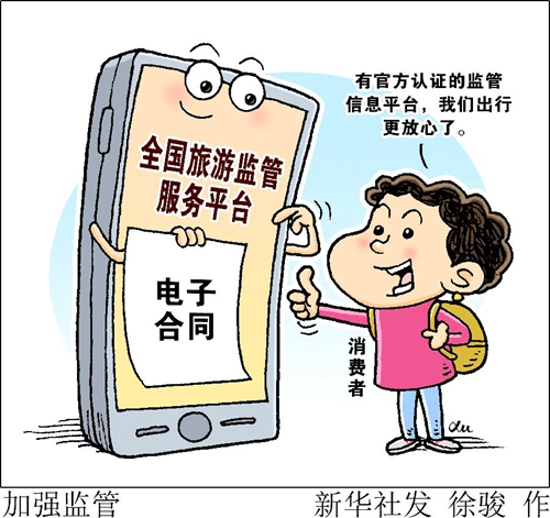 “我剛給全家人從旅行社訂了跟團(tuán)游,就收到了提醒簽約旅游電子合同的短信。有官方認(rèn)證的監(jiān)管信息平臺(tái),我們出行更放心了。”上海市民方赟梅說,家人和朋友對(duì)納入“全國旅游監(jiān)管服務(wù)平臺(tái)”的電子合同頻頻點(diǎn)贊。