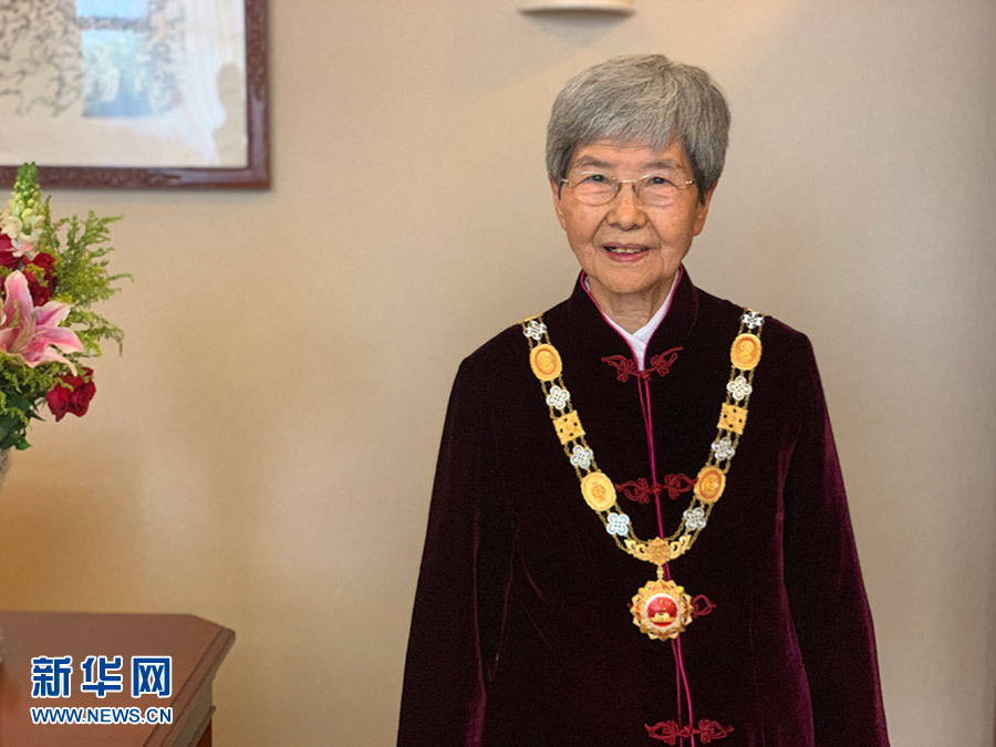 佩戴國(guó)家榮譽(yù)稱號(hào)獎(jiǎng)?wù)碌姆\詩(shī)(9月29日攝)。新華社發(fā)(敦煌研究院供圖)