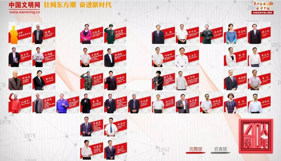 系列網(wǎng)絡(luò)高端訪談《40人對話40年》是中國文明網(wǎng)慶祝改革開放40周年宣傳中的重點欄目,我們邀請了相關(guān)行業(yè)和單位的39位代表人物(第40期為綜述),結(jié)合他們在改革開放中與祖國共命運、與時代同發(fā)展、與人民齊奮進的親身經(jīng)歷,講述改革開放故事,講述新時代中國特色社會主義故事,講述精神文明創(chuàng)建故事,引導(dǎo)全社會致敬先鋒、見賢思齊。通過近500回合精彩答問,1270分鐘精編視頻,16萬字文字摘編全面反映改革開放給社會帶來的全方位巨變,展現(xiàn)改革開放的偉大成就和寶貴經(jīng)驗。