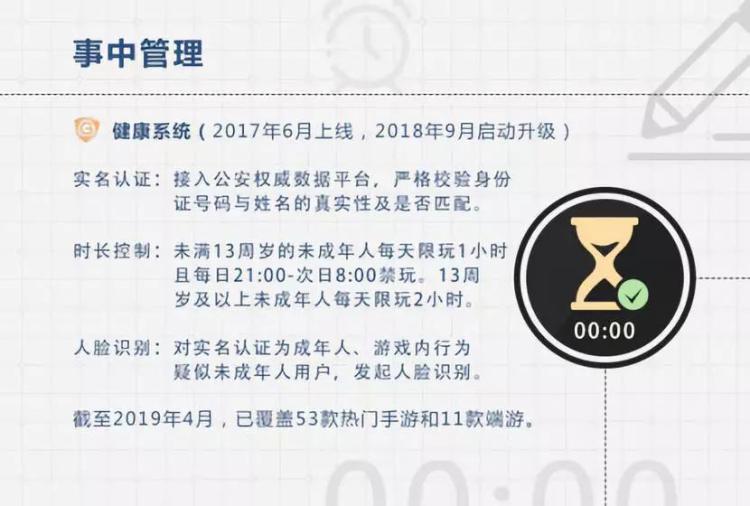 以目前體系搭建最全面的騰訊為例,2017年7月開(kāi)始,以《王者榮耀》為試點(diǎn),推出“健康游戲防沉迷系統(tǒng)”,限制未成年人每天登錄時(shí)長(zhǎng);2018年9月起,對(duì)新用戶身份信息與公安權(quán)威數(shù)據(jù)平臺(tái)進(jìn)行比對(duì),以此為標(biāo)準(zhǔn)決定是否將新用戶納入未成年人防沉迷體系……