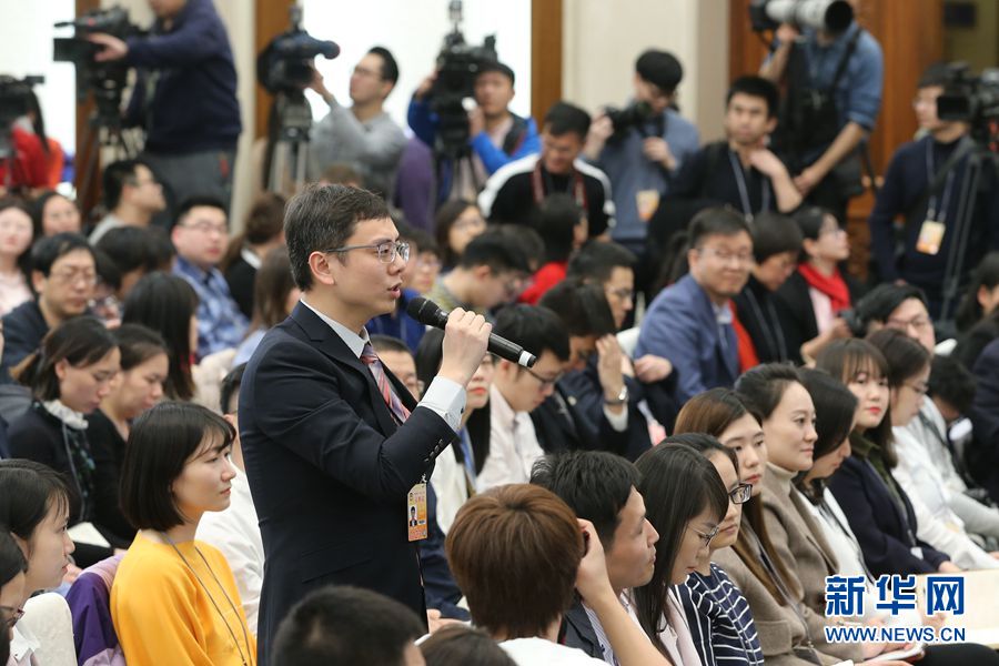 全國政協(xié)十三屆二次會(huì)議新聞發(fā)布會(huì)于3月2日15:00在人民大會(huì)堂一層新聞發(fā)布廳召開,大會(huì)新聞發(fā)言人郭衛(wèi)民向中外媒體介紹本次大會(huì)有關(guān)情況并回答記者提問。圖為新華社記者提問。新華社記者 邢廣利?攝?