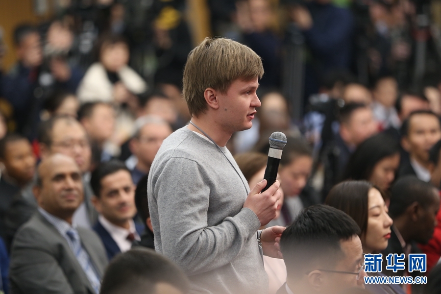 十三屆全國人大二次會議新聞中心3月8日10時在梅地亞中心新聞發(fā)布廳舉行記者會,邀請國務(wù)委員兼外交部長王毅就“中國外交政策和對外關(guān)系”相關(guān)問題回答中外記者提問。圖為俄羅斯塔斯社記者提問。新華網(wǎng)/中國政府網(wǎng) 劉廈 攝