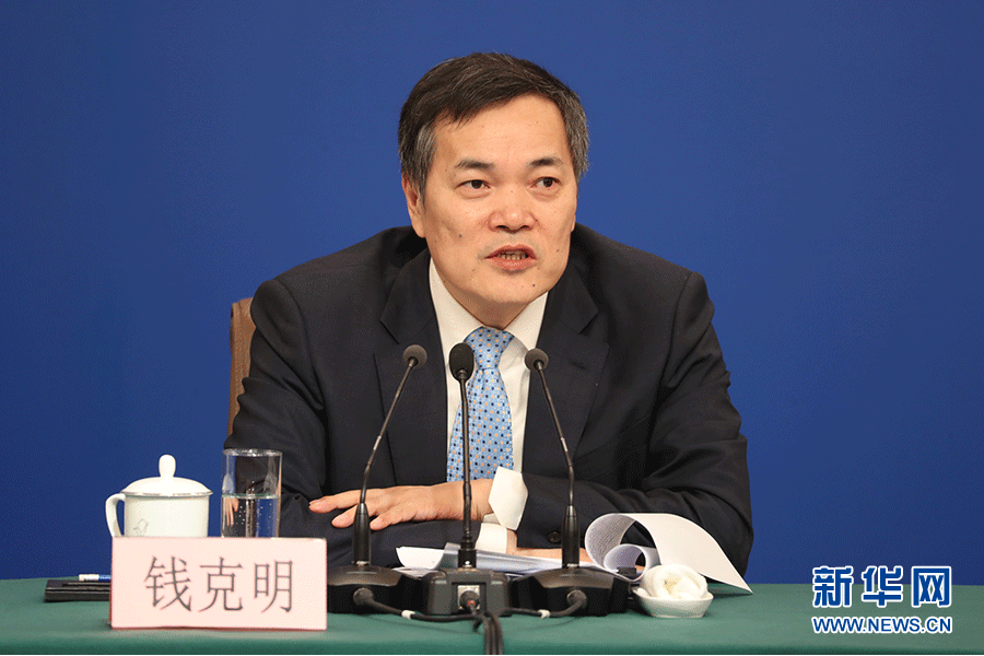 十三屆全國人大二次會議新聞中心3月9日(星期六)10時30分在梅地亞中心新聞發(fā)布廳舉行記者會,邀請商務(wù)部部長鐘山、副部長兼國際貿(mào)易談判副代表王受文、副部長錢克明就“促進(jìn)形成強大國內(nèi)市場 推動全方位對外開放”相關(guān)問題回答中外記者提問。圖為錢克明回答記者提問。新華網(wǎng)/中國政府網(wǎng) 陳杰 攝