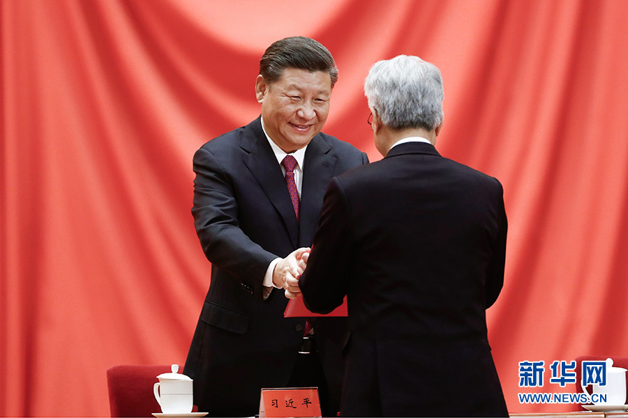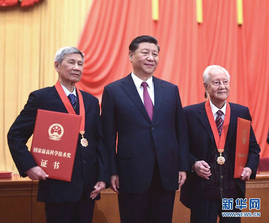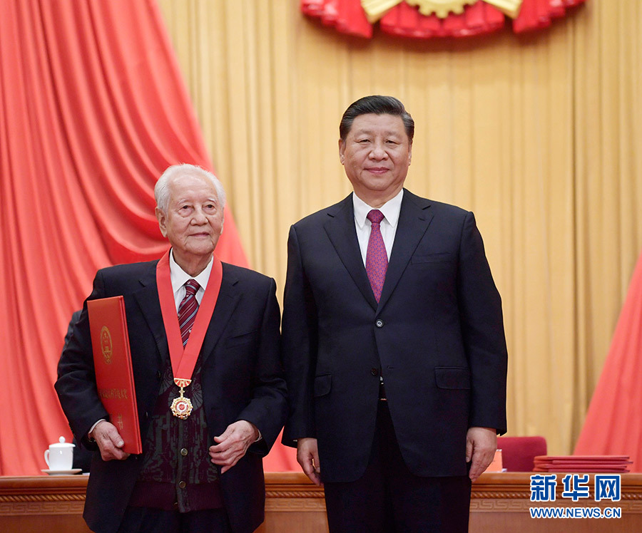 1月10日,2019年度國家科學(xué)技術(shù)獎勵大會在北京人民大會堂隆重舉行。中共中央總書記、國家主席、中央軍委主席習(xí)近平向獲得2019年度國家最高科學(xué)技術(shù)獎的原中國船舶重工集團公司第七一九研究所黃旭華院士頒獎。 新華社記者 李學(xué)仁 攝