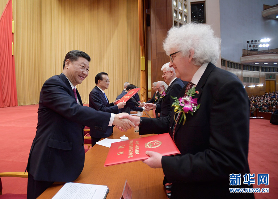 1月10日,2019年度國家科學(xué)技術(shù)獎勵大會在北京人民大會堂隆重舉行。這是中共中央總書記、國家主席、中央軍委主席習(xí)近平向獲獎代表頒發(fā)證書。 新華社發(fā)(盛佳鵬 攝)