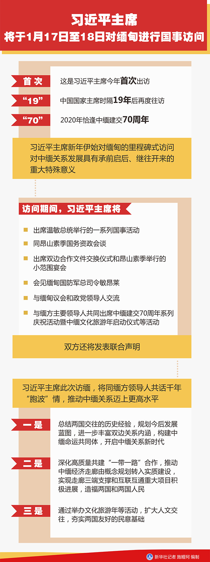 羅照輝表示,應(yīng)溫敏總統(tǒng)邀請(qǐng),習(xí)近平主席將于1月17日至18日對(duì)緬甸進(jìn)行國(guó)事訪問(wèn)。這是習(xí)近平主席今年首次出訪,是中國(guó)國(guó)家主席時(shí)隔19年后再度往訪,又恰逢中緬建交70周年,對(duì)中緬關(guān)系發(fā)展具有承前啟后、繼往開(kāi)來(lái)的重大特殊意義。緬甸是中國(guó)友好鄰邦。當(dāng)前,兩國(guó)政治上高度互信,經(jīng)濟(jì)上深度合作,國(guó)際地區(qū)問(wèn)題上密切配合,“胞波”情誼歷久彌新,民間往來(lái)高位運(yùn)行。建交70年來(lái),中緬關(guān)系在互尊、互信、互助的基礎(chǔ)上不斷發(fā)展,樹立了大小國(guó)家間和睦相處、合作共贏的典范。中方堅(jiān)持不干涉緬內(nèi)政,堅(jiān)定支持緬甸維護(hù)國(guó)家尊嚴(yán)和合法權(quán)益。在緬甸國(guó)內(nèi)和平和解問(wèn)題上,中方勸和促談,發(fā)揮建設(shè)性作用。緬方在涉及臺(tái)灣、西藏、新疆問(wèn)題上一直堅(jiān)定支持中方。緬甸積極響應(yīng)和參與“一帶一路”合作倡議。中緬經(jīng)濟(jì)走廊及大項(xiàng)目合作帶動(dòng)了緬方沿線就業(yè)和經(jīng)濟(jì)發(fā)展,極大提升了當(dāng)?shù)厝嗣裆钏健V芯拡?jiān)持踐行和平共處五項(xiàng)原則,堅(jiān)持國(guó)際關(guān)系基本準(zhǔn)則,支持多邊主義、維護(hù)自由貿(mào)易,共同為推動(dòng)建立公正合理的新型國(guó)際關(guān)系作出貢獻(xiàn)。雙方在聯(lián)合國(guó)、東亞合作等場(chǎng)合相互支持,在建立中國(guó)-東盟自貿(mào)區(qū),區(qū)域全面經(jīng)濟(jì)伙伴關(guān)系、“南海行為準(zhǔn)則”磋商等方面密切協(xié)調(diào)配合。