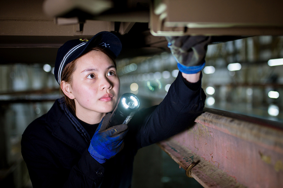 “我們這個(gè)崗位最重要的是細(xì)心,車底螺絲是否移位、電纜接頭是否松動(dòng),不敢放過一個(gè)細(xì)節(jié),比如說(shuō)動(dòng)車底盤的天線,遇到北方冰凍雨雪天氣時(shí),易被冰塊砸出裂紋,如沒及時(shí)發(fā)現(xiàn),將會(huì)對(duì)列車信息傳輸造成直接影響?!毕蚰钫f(shuō)。