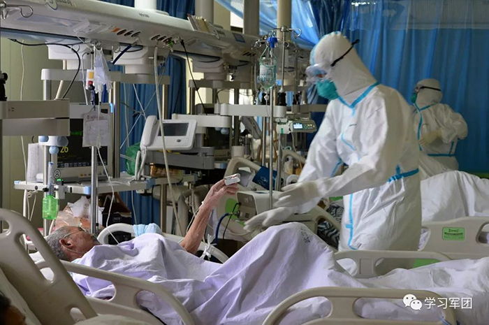 1月27日上午,海軍軍醫(yī)大學(xué)醫(yī)療隊(duì)醫(yī)護(hù)人員在漢口醫(yī)院重癥監(jiān)護(hù)室對(duì)新型冠狀病毒感染的肺炎患者進(jìn)行救治。醫(yī)護(hù)人員精心護(hù)理患者。解放軍報(bào)記者范顯海攝