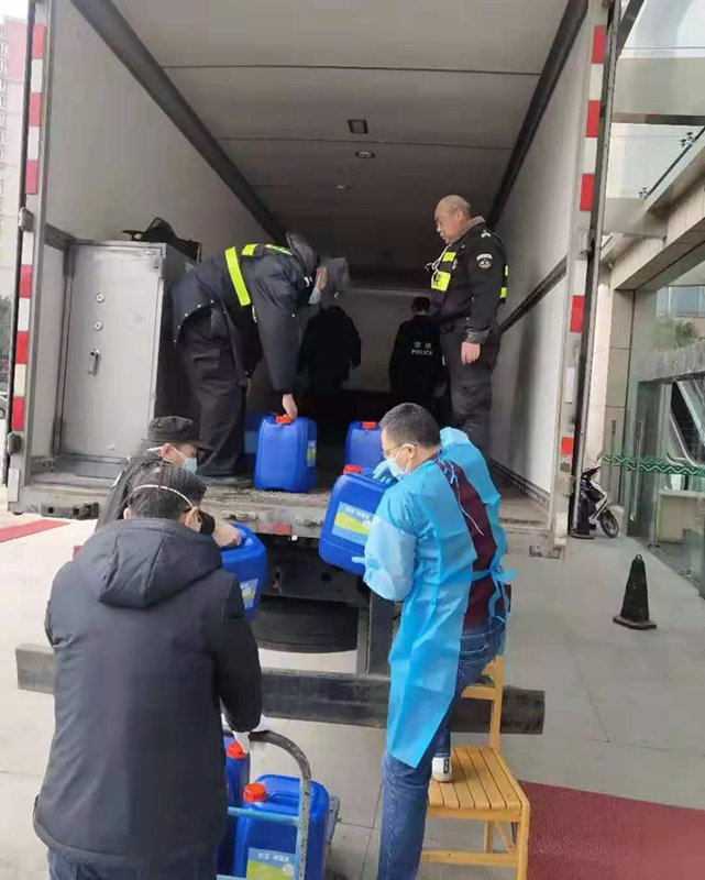 科技公司已經(jīng)下班,只留下2名員工,阜寧郵政的4名員工就成了主力,大家一起努力,花了3個(gè)小時(shí)總算將500箱共10噸的消毒液和一些醫(yī)護(hù)用品裝上了車(chē)。