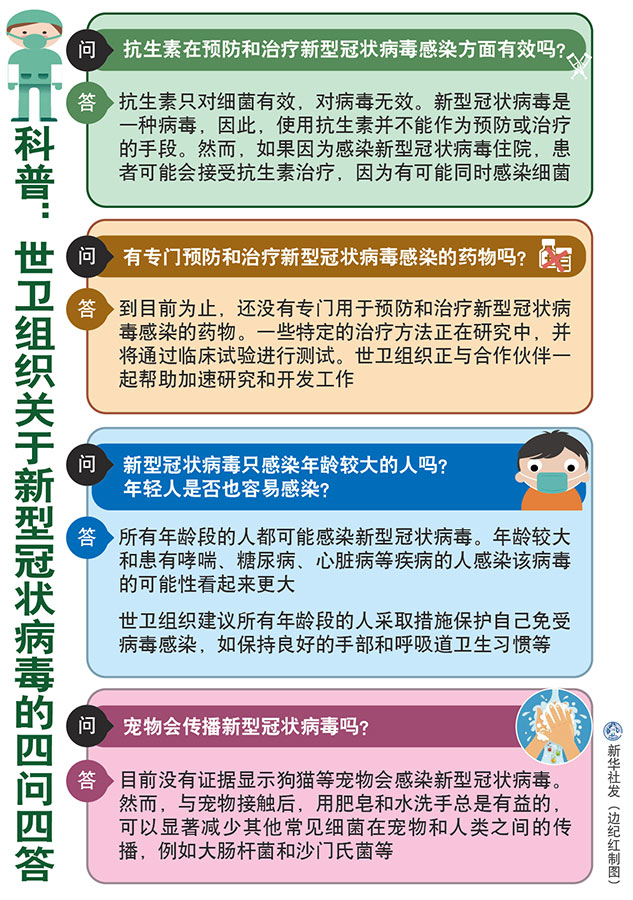 新華社北京2月2日電 面對(duì)當(dāng)前新型冠狀病毒感染肺炎疫情,世界衛(wèi)生組織近日在其官方網(wǎng)站,回答了公眾普遍關(guān)心的“抗生素在預(yù)防和治療新型冠狀病毒感染方面有效嗎”等四個(gè)問題。新華社記者梳理如下。
