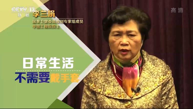 李蘭娟:日常生活不需要戴手套;只有直接接觸污染物的時候才需要戴手套。