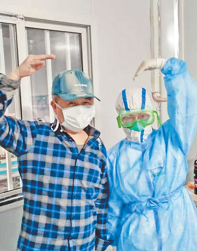 近日,雷神山醫(yī)院內(nèi)醫(yī)護(hù)人員與患者在一起。高 翔攝(影像中國)