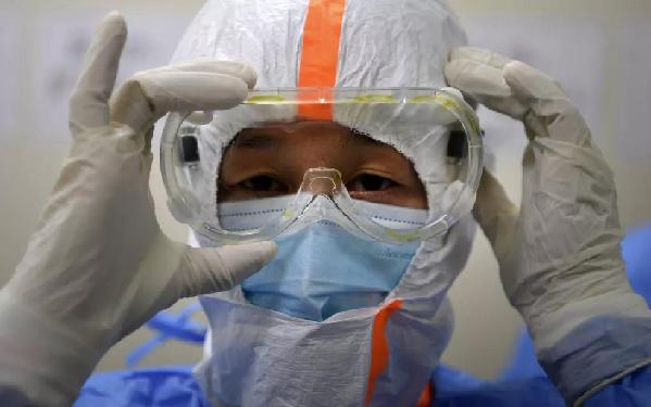 武漢協(xié)和醫(yī)院(西院),湘雅醫(yī)院感染病科醫(yī)生在戴護(hù)目鏡。經(jīng)濟(jì)日?qǐng)?bào)記者高興貴攝