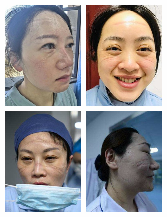 醫(yī)護人員臉上的勒痕(劉麗為左一)