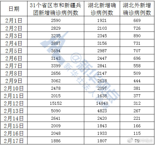 2月17日,31個(gè)?。ㄗ灾螀^(qū)、直轄市)和新疆生產(chǎn)建設(shè)兵團(tuán)報(bào)告新增新冠肺炎確診病例1886例,湖北新增確診病例1807例。這就是說(shuō),除湖北外的30個(gè)省區(qū)市和新疆生產(chǎn)建設(shè)兵團(tuán)昨日新增確診79例,這是自2月3日來(lái)新增病例到達(dá)高點(diǎn)890例以來(lái)的首次兩位數(shù)報(bào)告,也是第14連降。?