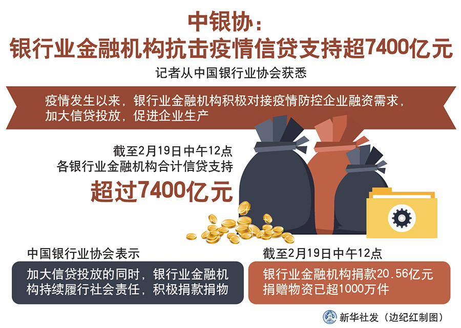 新華社北京2月20日電(記者李延霞)記者從中國銀行業(yè)協(xié)會獲悉,疫情發(fā)生以來,銀行業(yè)金融機構積極對接疫情防控企業(yè)融資需求,加大信貸投放,促進企業(yè)生產(chǎn)。截至2月19日中午12點,各銀行業(yè)金融機構合計信貸支持超過7400億元。
