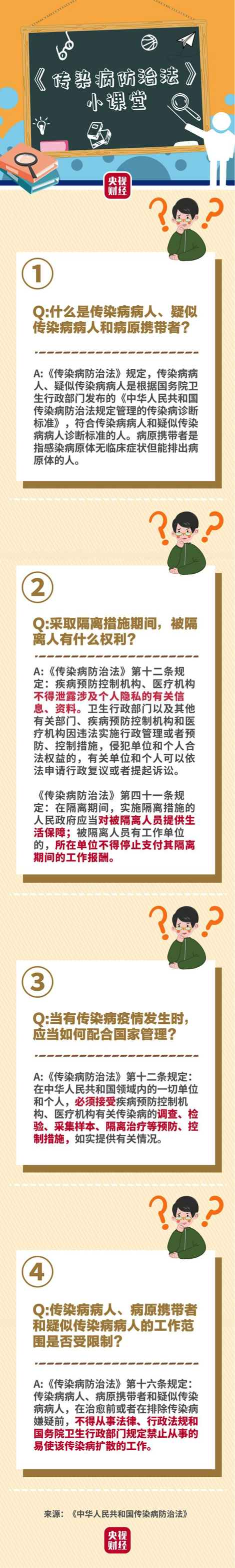 隔離期間不工作,你還能拿到工資嗎?配合疾病預(yù)防控制機(jī)構(gòu)、醫(yī)療機(jī)構(gòu)調(diào)查,你的個(gè)人信息會被泄露嗎?在治愈前或者在排除傳染病嫌疑前,你的工作范圍受限嗎?新冠肺炎疫情當(dāng)下,我們該如何用法律保護(hù)自己?央視財(cái)經(jīng)今天推出《傳染病防治法》小課堂第二期,戳一圖↓↓